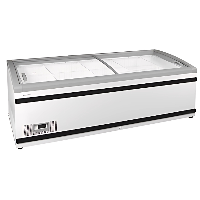 דף הבית / קטלוג מקררים / מקפיאים תעשיתיים / מקפיאים שוכבים / מקפיא אמבטיה עם דלתות הזזה מזכוכית המיועד לתצוגת מוצרים קפואים